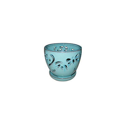 5 & 7" Nested Orchid Pot W/att. Saucer S/2 Grn