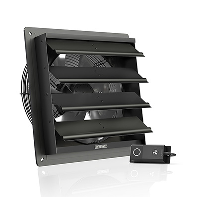 Features galvanized-steel shutters that are weather and corrosion resistant, and automatically closes when not in use. The blades and impeller are constructed of lightweight aluminum, weight-balanced to reduce vibrations. Utilizing an innovative EC motor that is controlled electronically using PWM (Pulse Width Modulation), the fans can maximize airflow while reducing noise and power consumption. The fully-enclosed motor is also permanently lubricated and houses dual-ball bearings that are rated at 67,000 hours and allow this fan system to be mounted horizontally or vertically. The unit is IP-44 rated to be highly resistant to dust and liquids, and performs well even in harsh environments.