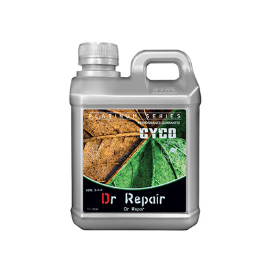 Cyco Dr. Repair treats chlorosis and environmental stresses. Chlorosis is a yellowing of leaf tissue due to a lack of chlorophyll. Possible causes of chlorosis include poor drainage, damaged roots, compacted roots, high alkalinity and more importantly nutrient deficiencies in the plant. Environmental stress can damage plant function or its development, which shortens the time for photosynthesis and in turn reduces yield. The lack of iron is one of the more common nutrient deficiencies in plants associated with chlorosis. Dr. Repair helps to restore your plant to its full potential.
