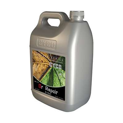 Cyco Dr. Repair treats chlorosis and environmental stresses. Chlorosis is a yellowing of leaf tissue due to a lack of chlorophyll. Possible causes of chlorosis include poor drainage, damaged roots, compacted roots, high alkalinity and more importantly nutrient deficiencies in the plant. Environmental stress can damage plant function or its development, which shortens the time for photosynthesis and in turn reduces yield. The lack of iron is one of the more common nutrient deficiencies in plants associated with chlorosis. Dr. Repair helps to restore your plant to its full potential.