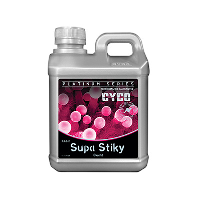 Cyco Supa Stiky will help increase plant resin production and aid in fruit size and fruit quality. Cyco Supa Stiky will help to retain sugar for increased taste and quality. Cyco Supa Stiky facilitates the management of sugars throughout the plant and increases yield in fruiting and flowering crops.