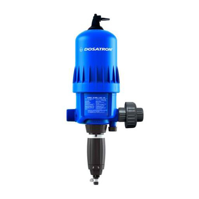 Operating pressure range is 7.2 to 116 PSI and water flow range is 2.2 to 40 GPM. Injection capabilities of 1:100 to 1:20 (1% to 5%). Unit has 1.5-inch NPT connections. 63% fewer parts, metal free piston.