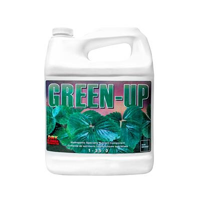 Green-Up from Dry Flower Products reduces yellowing in cuttings through its ability to provide nutrients before roots have developed. It can also be used on mature plants to reduce yellowing on lower leaves during the flowering stage.