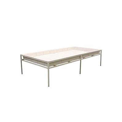 Heavy-duty 2 ft x 4 ft quick assembly tray stand. Absolutely no tools required. Can be assembled in 5 minutes or less. Accommodates all popular brand (ID) inside dimension trays and reservoirs including Flo-n-Gro® Duralastics® Botanicare® and more. Overall height is 25 in. Height from bottom bar to floor is 18 in without casters. Outside dimensions: 53 in length x 28.5 in wide. Inside dimensions: 51 in length x 26.5 in wide. Tray sold separately and may fit differently depending on brand. US Patents: 8 714 498 D756 690 and 9 084 478; Chinese Patent: 201280018267.2; Patents Pending: 29/562 014 US20150320200 AU2012290715 EP2725947 and HK1193554A; and PCT Application: WO2013/019268.