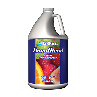 FloraBlend® 0.5-1-1 from General Hydroponics® is a vegan plant booster formulated with a proprietary combination of plant materials, seaweed, rock powders, and micronized leonardite. It harnesses the power of beneficial microorganisms and organic compounds to support healthy root structures, build plant immunity, and enhance the natural color and flavor of fruits and vegetables.