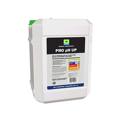 General Hydroponics Pro pH adjusters are based on completely different technology than our traditional smaller sized adjusters offering. New non-mineral based acids and bases will not add nutrient value like the use of phosphoric acid or potassium hydroxide. They are safer to use as well as compared to mineral based adjusters. This is due to having a zero rating score for all safety categories on the HMIS scale as well as being non-corrosive and non-caustic. This means there are no HazMat fees to ship these products like other pH adjusters. Use Pro pH UP or Pro pH DOWN to effectively adjust the pH of nutrient solutions or irrigation water. GH Pro pH adjusters are highly concentrated and available in commercial sizes.