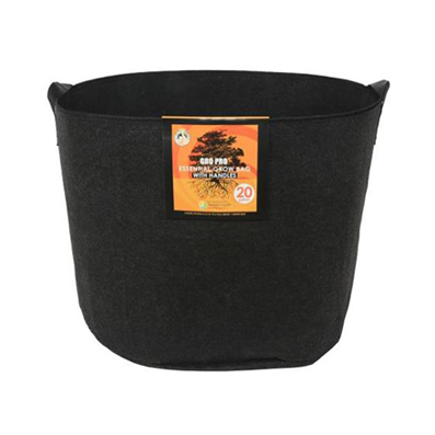 The Gro Pro® Essential Round Fabric Pots with handles are constructed from high-quality non-woven fabric. This fabric provides great support, while allowing air to travel into the root system. Gro Pro® Essential Round Fabric Pots feature breathable fabric allowing for faster plant growth through better access to oxygen. Air flow prunes the root structure for a healthier and happier plant. Gro Pro® Essential Round Fabric Pots will not trap water, which can help prevent overwatering of plants. Also keeps your roots cool in the heat. These fabric pots are made from 220 gram weight material.
