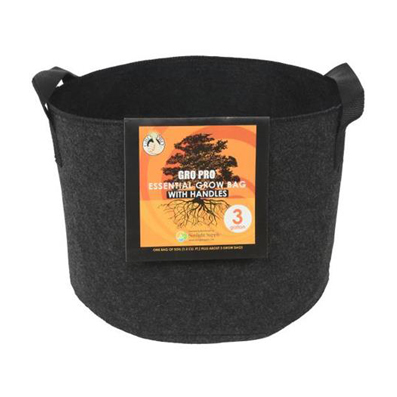 The Gro Pro® Essential Round Fabric Pots with handles are constructed from high-quality non-woven fabric. This fabric provides great support while allowing air to travel into the root system. Gro Pro® Essential Round Fabric Pots feature breathable fabric allowing for faster plant growth through better access to oxygen. Air flow prunes the root structure for a healthier and happier plant. Gro Pro® Essential Round Fabric Pots will not trap water which can help prevent overwatering of plants. Also keeps your roots cool in the heat. These fabric pots are made from 220 gram weight material.
