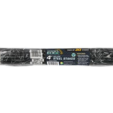 Grower's Edge® Deluxe Steel Stakes provide heavy-duty support for your plants, featuring spurs that prevent slipping of tie strings or tape ensuring vines stay securely in place. The green plastic coating on the steel core enhances durability, making them resistant to weather conditions and rust. Unlike bamboo stakes that can split or rot, these stakes are long-lasting and suitable for both indoor and outdoor applications.