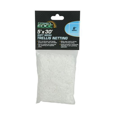 The Grower's Edge® Soft Mesh Trellis Netting features 6-inch (15.25 centimeter) squares, perfect for supporting vines, vegetables, and flowering plants. The soft, non-abrasive material protects delicate stems and foliage while allowing for easy access. Whether you choose to install it vertically or horizontally, this durable nylon mesh trellis netting is designed to guide your plants to optimal growth.
