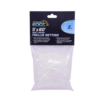 The Grower's Edge® Soft Mesh Trellis Netting features 6-inch (15.25 centimeter) squares, perfect for supporting vines, vegetables, and flowering plants. The soft, non-abrasive material protects delicate stems and foliage while allowing for easy access. Whether you choose to install it vertically or horizontally, this durable nylon mesh trellis netting is designed to guide your plants to optimal growth.