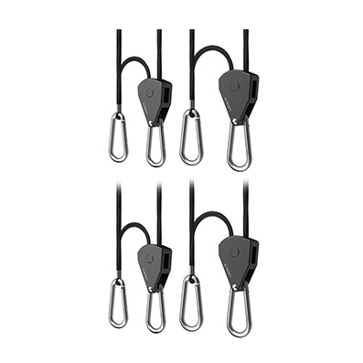 The AC Infinity Heavy-Duty Adjustable Rope Clip Hanger is designed to hang various grow tent and ventilation equipment. You can easily push the carabiner hook to clip and secure your equipment. Then pull on the rope, which will automatically lock with the stainless steel ratchet mechanism. The rope is made of 1/8 inch braided polypropylene, and the hooks are constructed of zinc-plated steel. The internal gears inside the locking ratchet are all built with stainless steel parts for a long-lasting smooth operation.