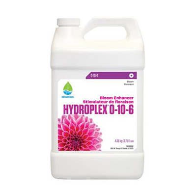 Hydroplex® 0-10-6 bloom enhancer from Botanicare® includes a broader range of amino acids, more trace minerals and more select, beneficial vitamins. Most standard PK boosters are structured to create larger fruits and flowers. Hydroplex 0-10-6 surpasses that standard by increasing plants resistance to external stresses and amplifying enzyme, chlorophyll, and essential oil production.