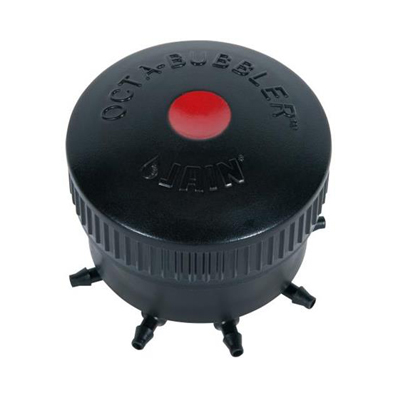 TheOcta-Bubbler® from Jain Irrigation is a pressure compensating device with a 1/2-inch FPT inlet and 8-swivel-port 3/16-inch outlets. Octa-Bubblers deliver water to multiple locations. Built-in back flow prevention engineered for added protection. Optional port plugs are available for unused ports. Available flow rates are 2 GPH, 6 GPH and, 10 GPH; 20 GPH using a flow control device. Pressure compensation range is 20—60 PSI. Constructed using ABS plastic.