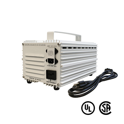 The LightEnerG™ Premium Ballast Kits are versatile magnetic ballasts capable of switching between voltages with ease. Simply use either the 120 V or 240 V power cord (available separately) to change the voltage of the ballast without the need for any additional wiring. Its aluminum housing is specially designed to dissipate heat and keep components cool, and includes a top-of-the-line Aerovox® capacitor. This ballast is also compatible with 600 W metal halide (MH) conversion lamps and the lamp cord receptacle accepts all LightEnerG lamp cords and reflectors.