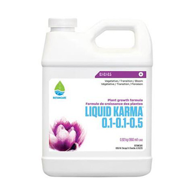 Liquid Karma® 0.1-0.1-0.5 from Botanicare® is a dynamic supplement, enhancing nutrient availability when paired with your preferred plant food. Its versatility shines through various growth stages, stimulating vegetative growth in early plant life without overwhelming nitrogen, phosphorous, or potassium levels. Ideal for plant starts, cuttings, seedlings, and mother plants, Liquid Karma promotes root development and nutrient uptake, fostering vigorous foliage, fruit, and bud sites.