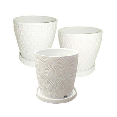 Matt White Planter 6" Asst. Set/2 W/saucer