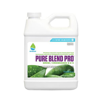Pure Blend® Pro Grow 3-1.5-4 from Botanicare® is a premium one-part plant food suitable for soil, coco, container gardens, and hydroponic setups. Formulated for use during the vegetative growth stage, it offers a balanced blend of major, secondary, and trace minerals derived from organic and natural sources.