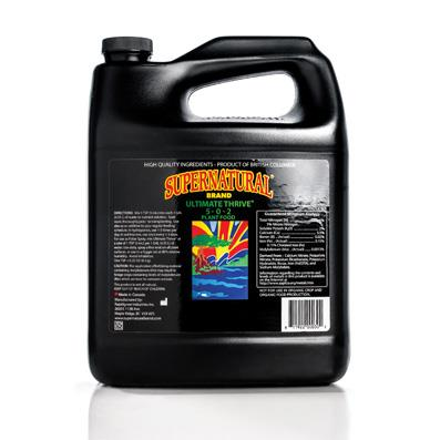 Supernatural Brand® Ultimate Thrive® 5-0-2 is a high-quality liquid supplement that supports robust root systems and enhances seed germination. This macro and micro blend is essential for a thriving feeding program, ensuring plants are energetic, colorful, and produce bountiful fruit loads.