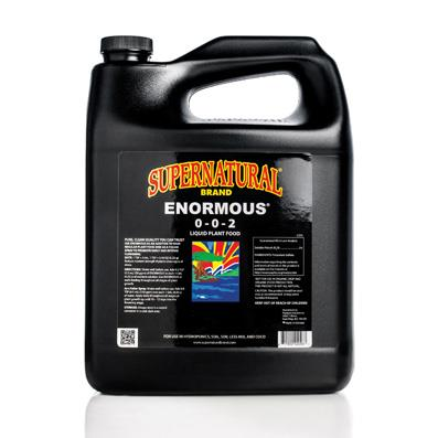 Supernatural Brand® Enormous® 0-0-2 introduces a unique mineral emulsion extract from the Sea of Cortez. It uses a nutrient feedback absorption boost that not only enhances crop growth but also increases crop yield by reducing the vegetable growth time by 50% and shortening the flowering phase by an additional two weeks.