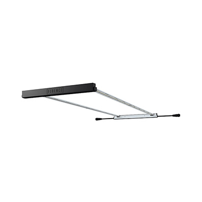 The Fluence RAZR2 Array is ideal for tissue culture, seedlings, and cutting/cloning propagation as well as ornamental plugs and starter pots, with an average PPFD up to 160 µmol/m2/s over a 2-foot by 4-foot (61 by 122 centimeter) area with a 12-inch (30-centimeter) mounting height above canopy. The RAZR2 Array includes 10 lighting modules, and covers 80 square feet (7.43 square meters) of canopy.