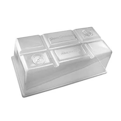 These excellent quality 4 in and 7 in Ultra Clear Vented Humidity Domes now have built-in light tracks that accommodate the 18 in Super Sprouter® T5 HO Grow Light Fixture. The light tracks are directional to allow the light to run the length of the domes or the width of the domes, allowing two trays to run side by side. Vertical sides allow the use of all plant sites in a propagation tray. Two vents in the top of the dome can be opened or closed to control humidity. These are the most clear and transparent domes on the market, allowing for maximum light penetration and the best viewing of your plant starts.